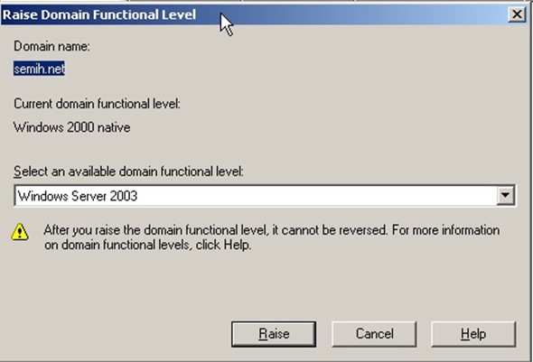 Adprep /domainprep komutu çalıştırmak için Domain Functional Level imizi native mod a çekiyorum.