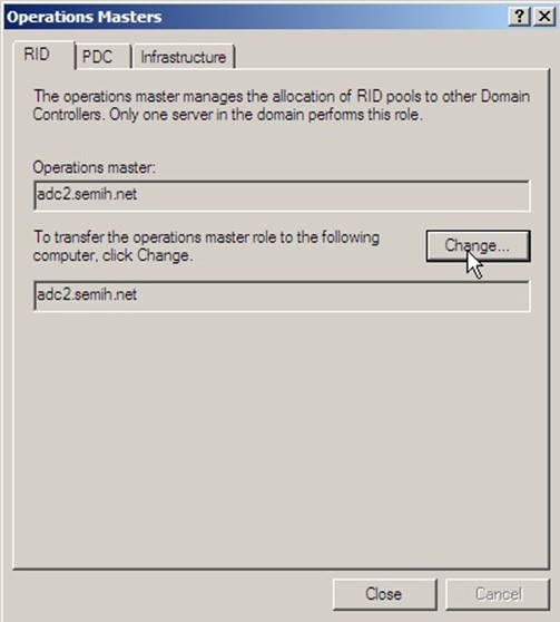 AD User and Computers a gelip oradan oradan change operations master a gelip RID, PDC ve Infrastructure rollerini change deyip yeni 2008 DC unn üzerine almamız gerekmekte.