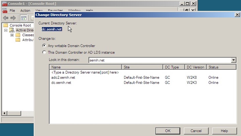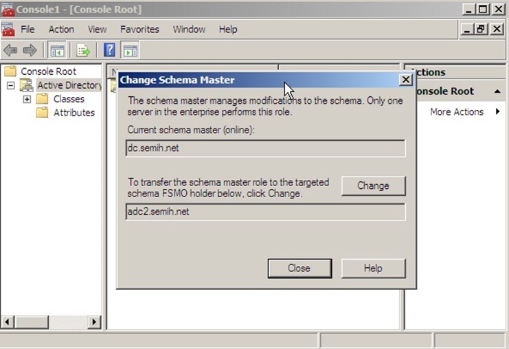 2008 server a bağlandıkan sonra change operantions masterdan schema master ı değiştiriyorum.