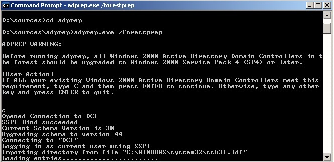 Server 2003 ten Server 200 e sunucuyu formatladan In-Place Upgrade ile sunucumu 2008 e upgrade edebiliriz. DC ın 2008 e upgrade edilmesinden önce domainimizin upgrade i yapılmalıdır. 2008 server cd sinin olduğu dizine gelerek source\adprep path inin altında