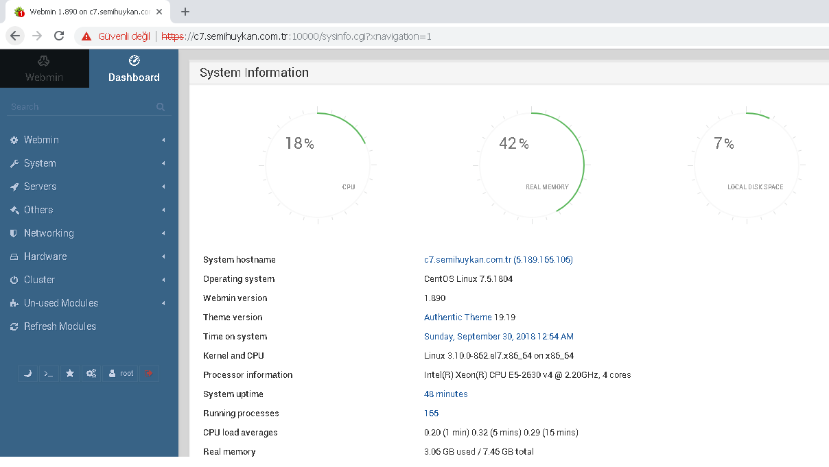Linux sunucuda network\firewall\monitoring operasyonlarını gerçekleştirmek için webmin uygulaması sunucuya kurulabilir. Kurulum ve konfigurasyon ile ilgili yapılacaklar aşağıdaki gibidir.