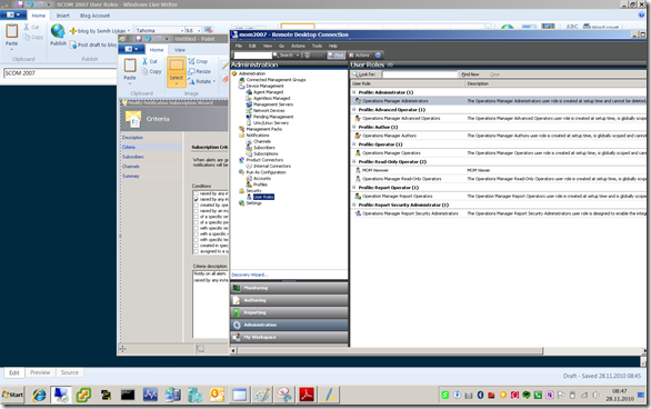 SCOM 2007 de istediğimiz kullanıcıları istediğimiz yetkileri verebiliriz. SCOM da ayrıca var olan profile lar da mevcuttur. Bu profillerin açıklamaları profiles ekranın görebilmekteyiz. Bİr account ta istenilen yetkilerde nelere view edeceği ile ilgili bir düzenleme oluşturuyorum.