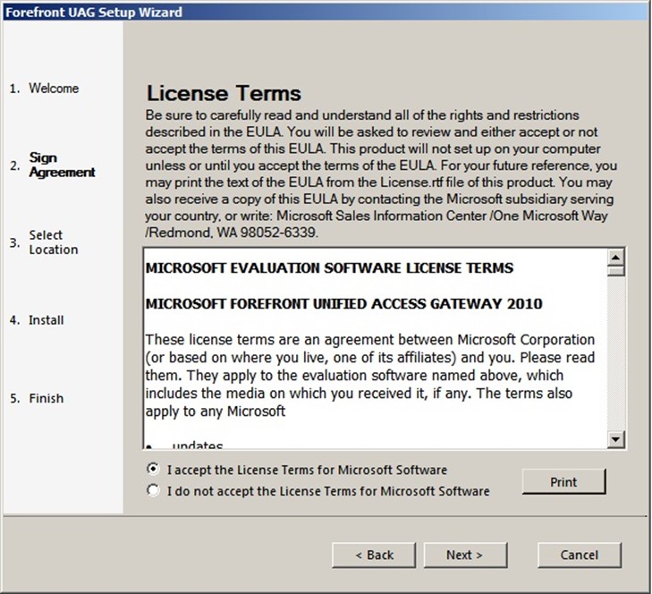 UAG 2010 ile şirket içi kullanılarn web uygulamalarını publish edebileceğiz gibi uygulamalarımızıda publih edebiliriz. 2008 R2 ile gelen bir özellikde Direct Access özelliğini kullanabilmemiz mümkündür. UAG 2010 sistem gereksininleri ise Server 2008 r2 std. veya ent sürümün üzerine kurulabilmektedir. 2 ethernet kartı gereksinimi vardır. UAG kurulumu ile birlikte TMG de kurulmaktadır. UAG 2010 publish edilirken sertifika kullanmaktadır (SSL). Windows un tüm uygulamarını publih edebilmekteyiz. Owa, Moss 2007-2010, OCS, SCCM, SCOM, CRM, RDP uygulamarını tek bir arayüz üzerinden publish edebilmekteyiz. Böylelikle sistemimizin yönetimi kolaylaşmakta iken, bu uygulamalara erişecek olan kullanıcılarımız için ise büyük bir kolaylık sağlamaktadır. Tek bir arayüz içerisinden bütün uygulamaların bir arada olması. Ram ihtiyacının ise min. 4 Gb olması biraz dikkar çekici. Kurulumu tek sunucu üzerine yapabildiğimiz gibi birden çok sunucu ile UAG yi kullanabiliriz. Client tarafında ise uygulamamlarımız publih ederkenki policyler ile bazı şartların client tarafından sağlanmasını zorunlu hale getirebilir. Direct Access özelliği ile VPN sorununu çözmüş oluruz. Uygulamarımızı internete güvenli, tek noktadan ve yönetilmesi kolay bir biçimde açmış oluruz. Kurulum aşamasında 2008 R2 Stn veya Ent sürümü üzerinde ISS kurulumu gerçekleştirilir. Daha sonra UAG nin kurulumuna geçince install forefront uag yi tıklayarak kuruluma başlıyoruz.