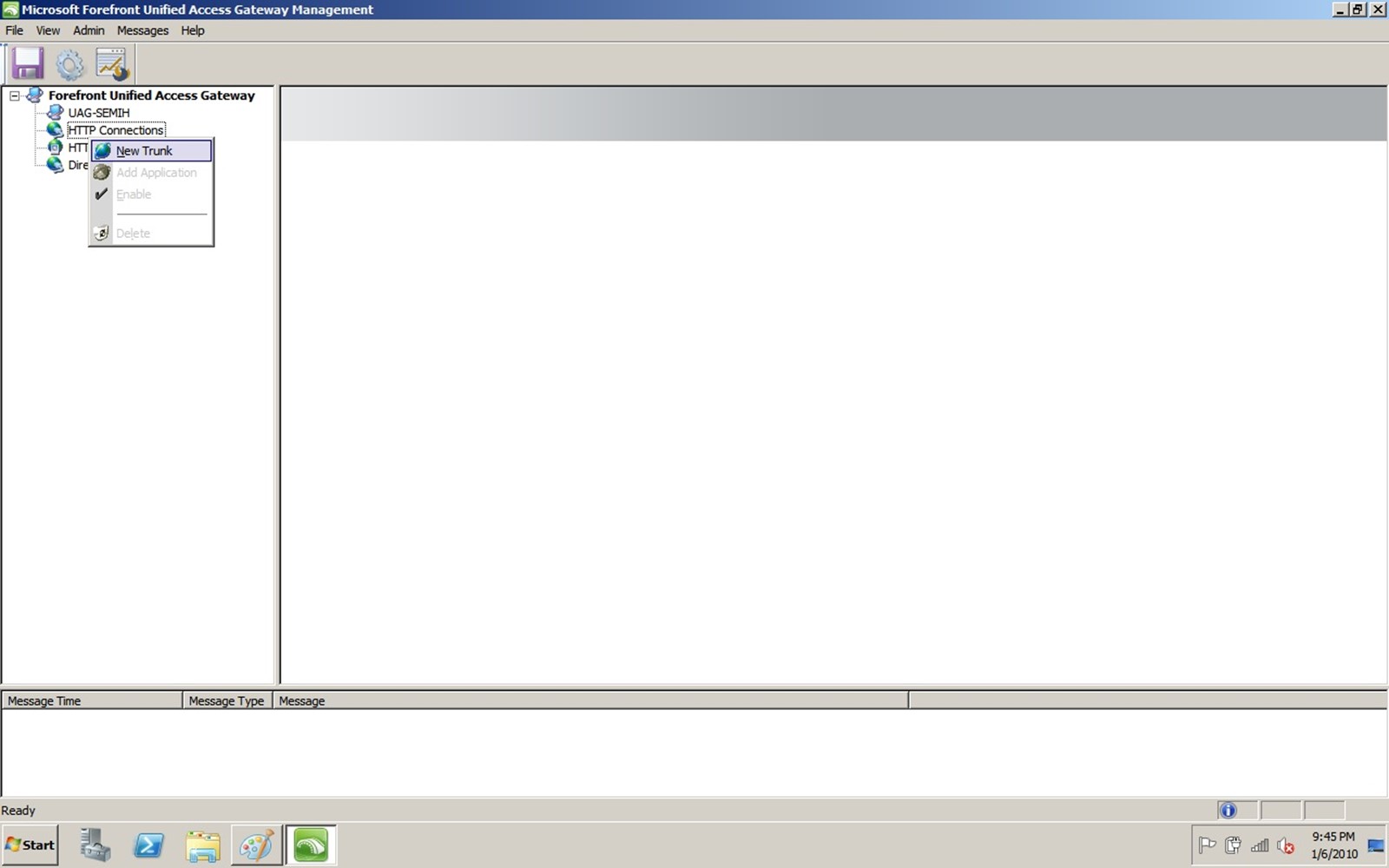 UAG de uygulamalarımızı publish etmeden once bir trunk oluşturmamız gerekmekte. Çalışmalarımızı daha sonra bu trunk ın üzernde gerçekleştireceğiz.