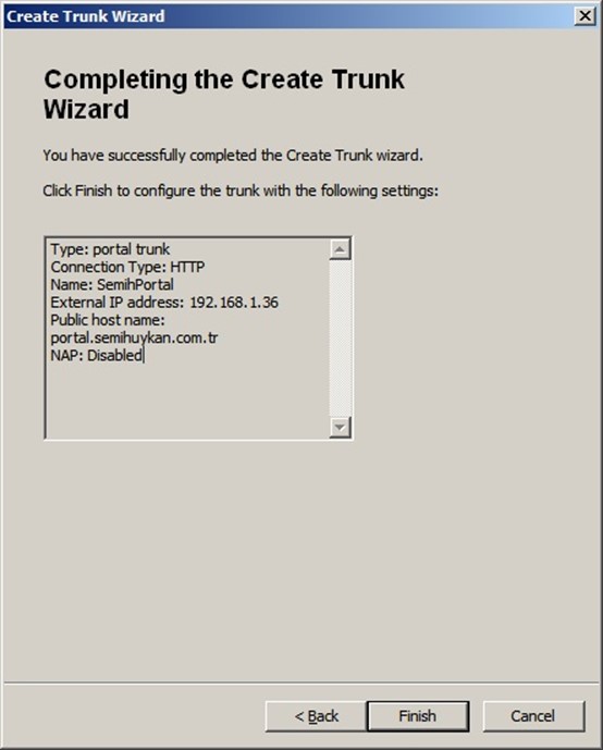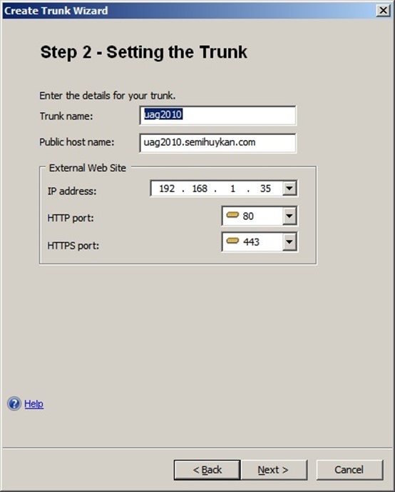 Trunk ıma bir isim veryorum. Puclic hostname i belirliyorum ve Wan tarafındaki Ip mi seçiyorum.