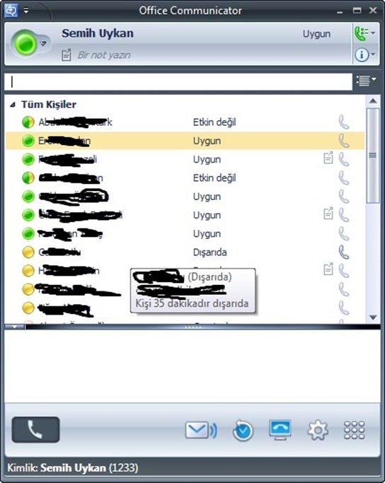 Office Communicator görünümü yukarıdaki gibidir.