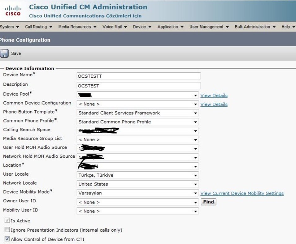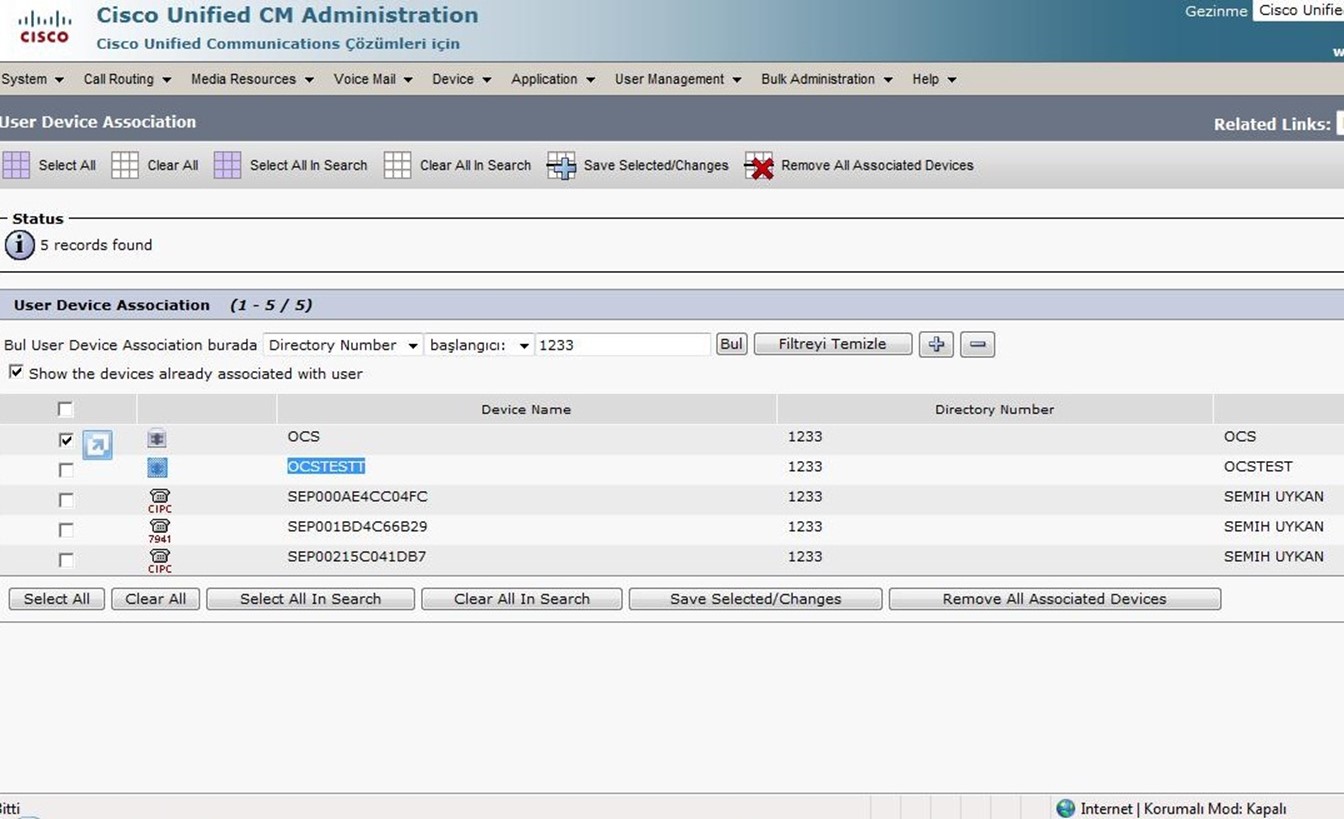 Mediation ile rule lar ile uğraşmadan, mediation için bir server bulup ayarlarını ile uğraşmadan var olan sistemimiz Cisco ile tlf görüşmelerini aktif olarak kullanabiliriz. Call manager da OCS clientları ilk etapta gözükmeyecektir. Bunun için Linklerde yazılan adımları uygulayarak Call Manager a bir Telefon import etmemiz gerekmetedir Bu da ufak bir dosyanın Call Manager a import edilip Call Manager resetlendikten sonra OCs için ayarlanacak telefon Standart Client Services Framework olarak Call manager da gözükür.