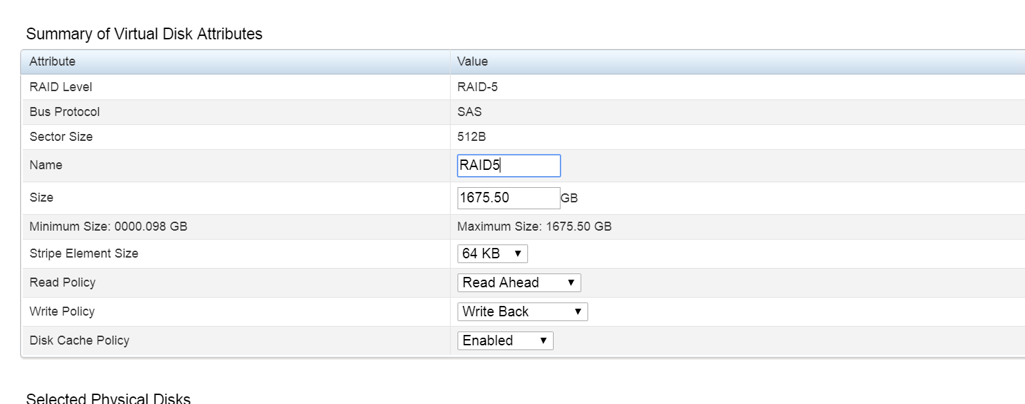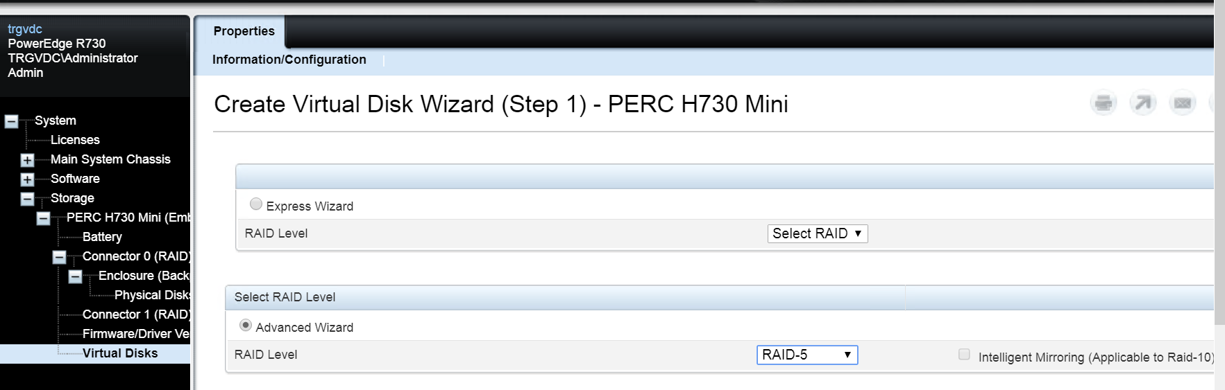 Aşağıdaki gibi yeni bir virtual disk oluşturulur. Virtual disk oluşturulurken raid seviyesi belirlenir.
