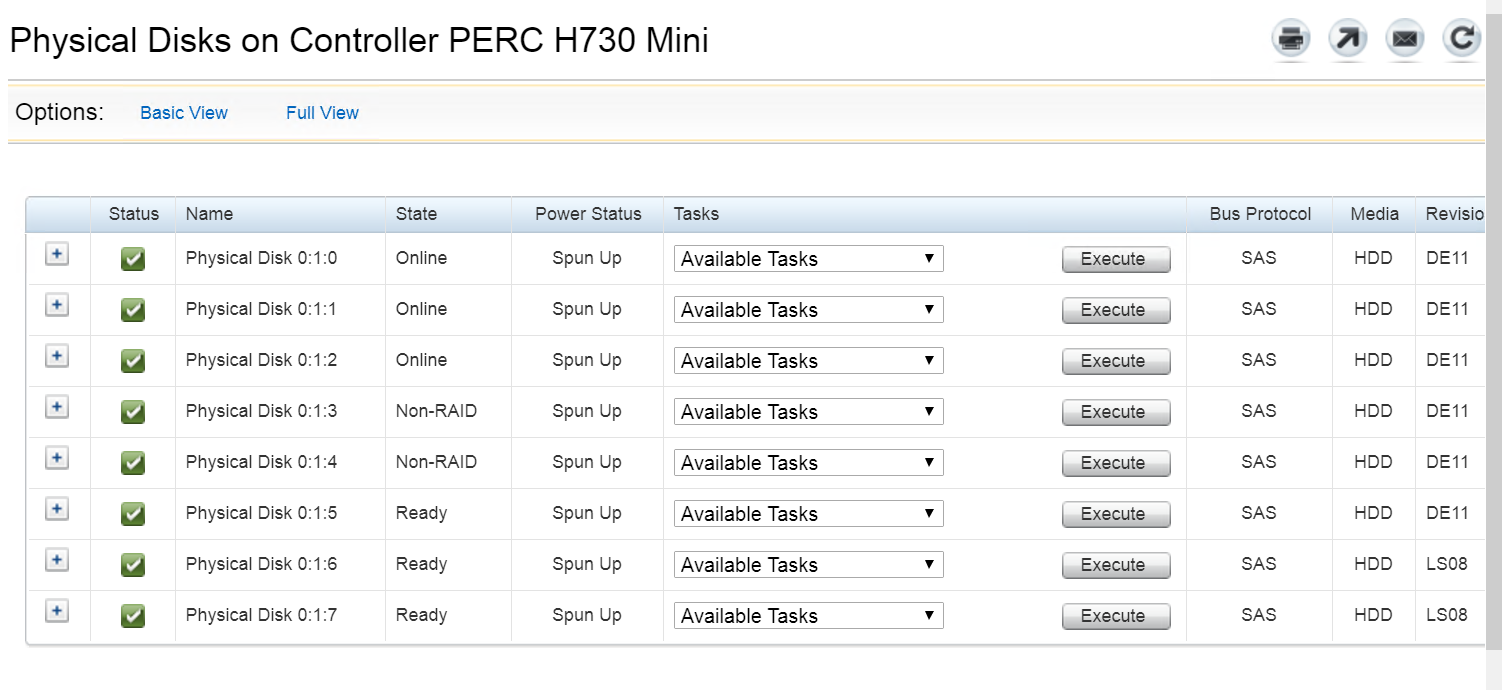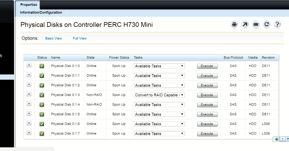 Server üzerinde disk takıldığında disk ready durumuna geçer. Raid yapılmadan diskler sunucuda çalıştırılırsa non-raid olarak görülür.