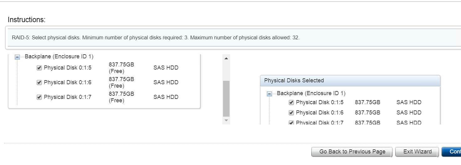 İstenilen raid seviyesi de istenilirse uygun disk sayısına göre değiştirilebilir veya var olan raid disk seviyesi korunarak işleme devam edilir ve hangi fiziksel disk virtual disk e alınacaksa o disk seçilir.