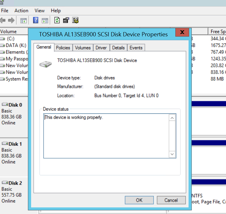 Raid olmayan disklerin sunucuda hangi disk olduğunu görmek için disk manager dan diskin özellikleri açılır.