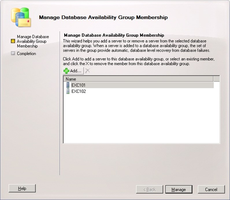 DAG yapısı oluşturmakbu kadar kolay. Bundan sonraki aşamalarda ise DAG yapıma exchange rollerinin kurulu olduğu sunucuları seçmem gerek. Bu işlemi shell ile yapabildiğim gibi oluşturduğum dag yapısına sağ tıklayarak dag yapıma katılacak sunucuları seçiyorum.