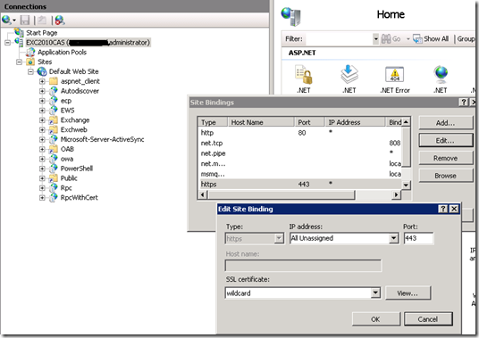 IP,SMTP,POP,IMAP için kullanılacak sertifikayı shell üzerinden değiştirmemiz gerekecek. Ancak web için kullanılacak sertifikayı ise ISS üzerinden sertifikayı bind edebiliriz (asağıdaki örnekteki gibi)
