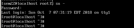 su loginname komutu ile istenilen kullanıcıya terminal ekrenında geçiş yapılır. Sem22 kullanıcısından root kullanıcısına geçiş yapıldı.