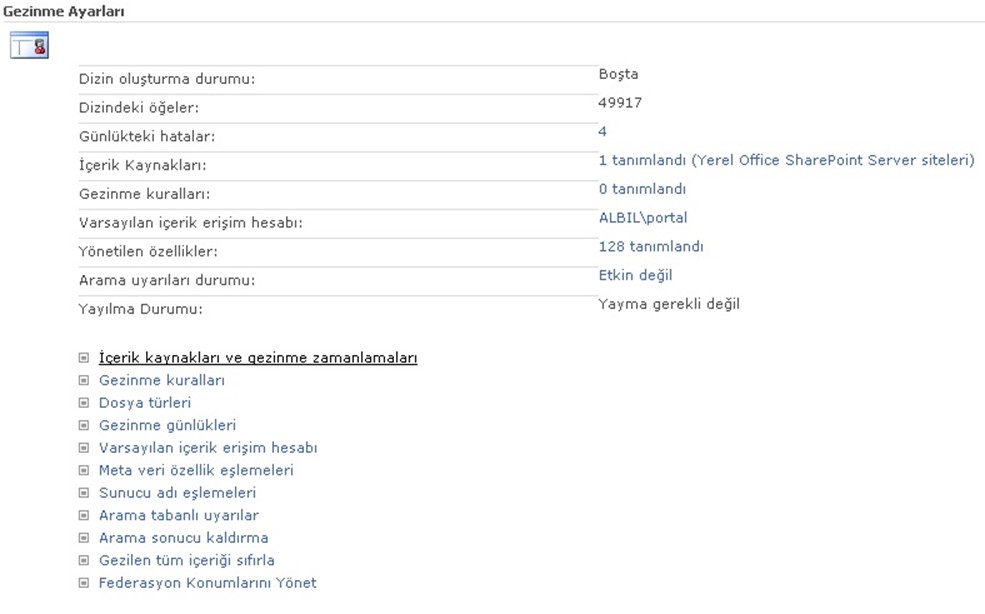 Moss ta bir diğer search işlemi de portal ın kendi DB sini, bir web sitesini indexlemesi veya bir file server ın indexlenmesi sonucu arama yaptığımızda sonuçları alabilmekteyiz. Bunun için ssp den arama ayarlarından bazı ayarları yapmamız gerekmektedir.