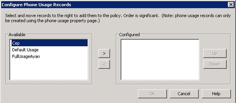 Phone usage da bir ayar yapılmaz. Sadece hangi yönde arama yapılabileceğini belirleriz. Cep – Dahili – Şehirlerarası vs gibi.