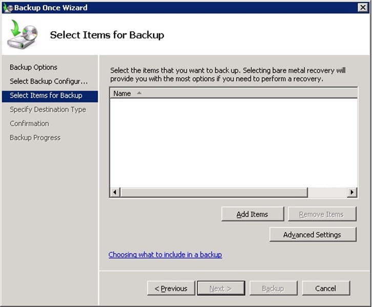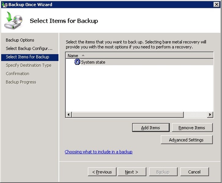Burada Add Items diyerek yedek system state i seçerek sysem state yedeği alabiliriz.