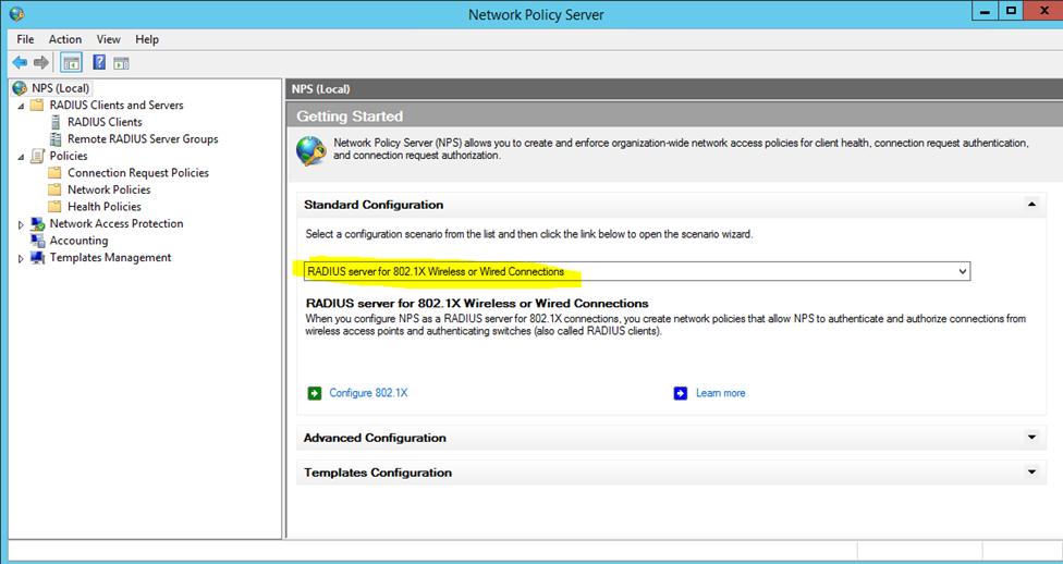 Server manager dan NAP servisi kurulduktan sonra aşağıda konfigurasyon adımları görülmektedir.