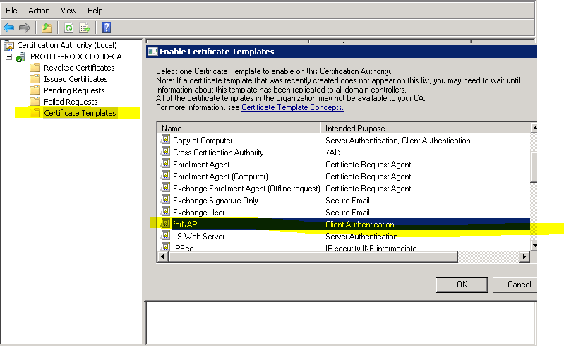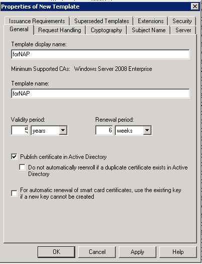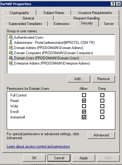 NAP sunucusunda kullanılmak üzere windows authentication sertifikasını publish etmemiz gerek.