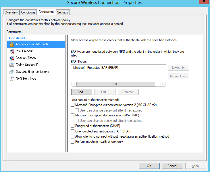 Authentication method u EAP olarak seçip istenilen ayararda yapılabilir.