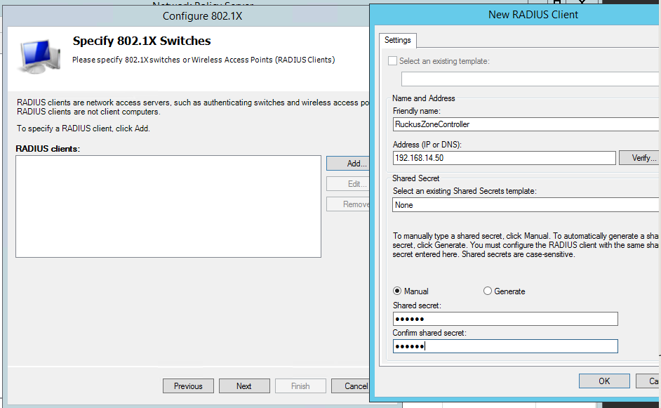 Buraya AP veya WiFi controller ımız gösteyiroz. Birden fazda wifi AP veya controller varsa tek tek buraye hepsini tanıtmalıyız. AP ve Controller a da radius ip mizi ve shared secret ımızı yazıyoruz.