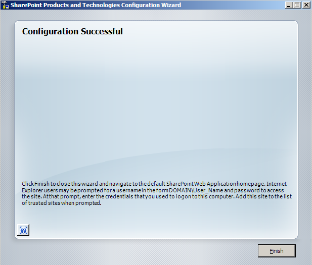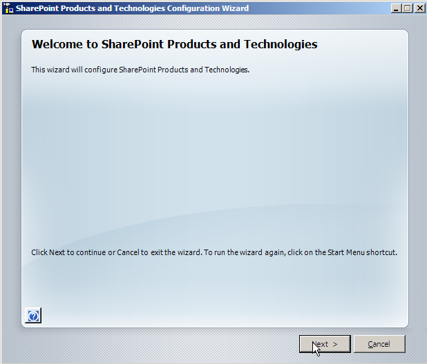 Kısa sürede biten bir kurulumdan SPS in ayarlarının yapılacağı SharePoint Products and Technologies Wizard ı çalışmaya başlayacaktır.
