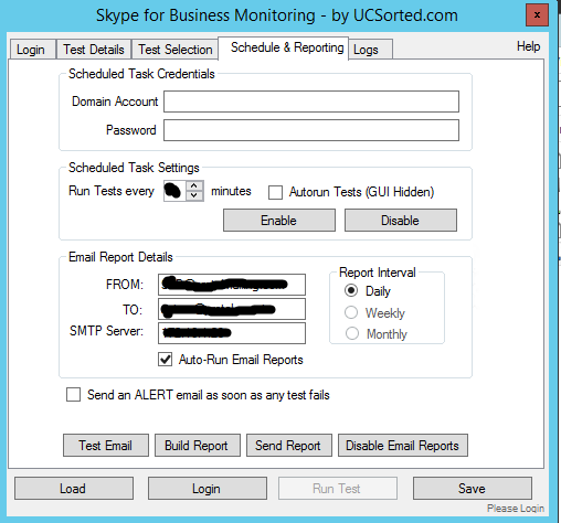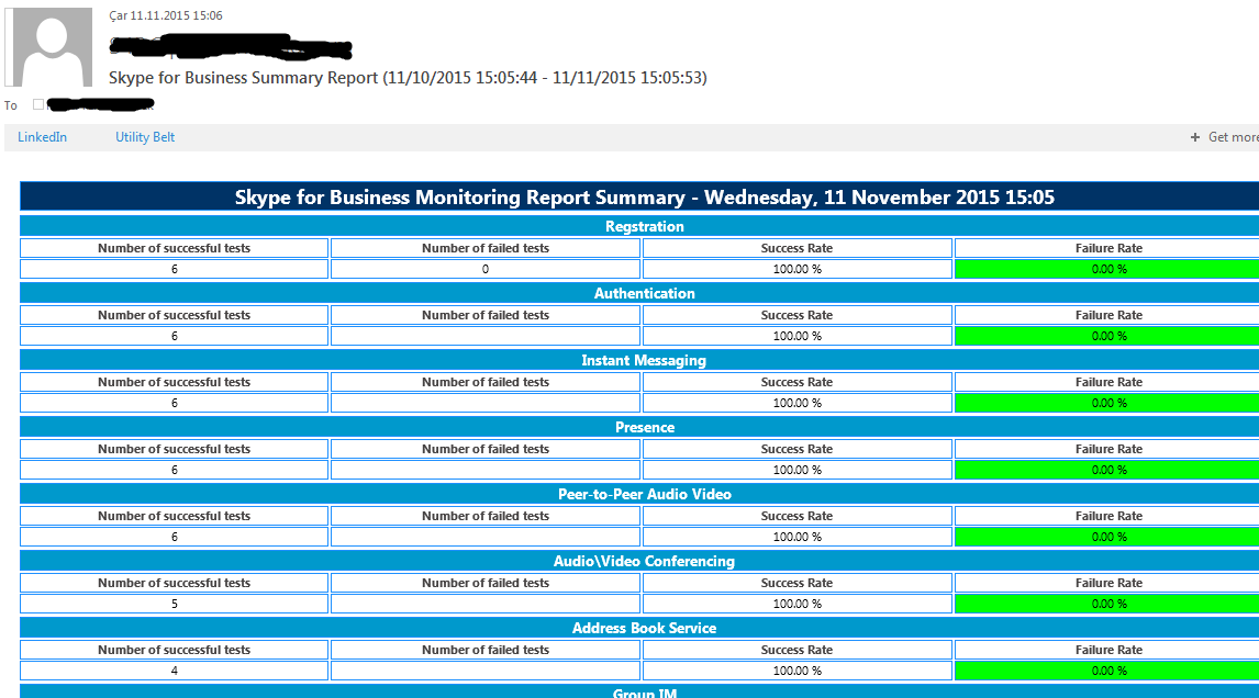 Skypefor business ı monitör etmek için Microsoft un çıkardığı ve güncellemelerinin bulunduğu ücretsiz bir uygulamadır. Uygulamayı https://gallery.technet.microsoft.com/office/Skype-for-Business-Tool-df083dd8 lininden indirip uygulama login olması için gerekli user bilgileri tanımladıktan sonra test için oluşturularak 2 account un bilgilerini yazmak gerek. Bu bilgilerle uygulama s4b üzerinde ilgili script leri çalıştırarak testleri gerçekleştirecektir.