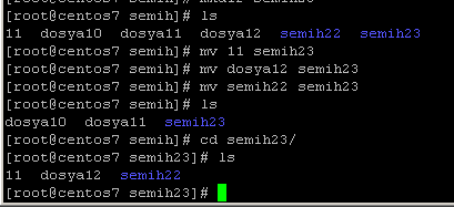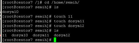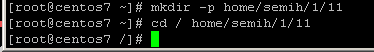 Yukarıdaki gibi –p parametresi ile alt klasör oluşturur. Semih klasörümüm altında 1 klasörünü ve 1 in de altında 11 klasörünü açar.
