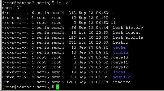 Ls –al komutu ile gizli klasörler bilgileri ile listelenir.