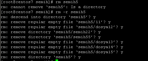 Rm –rf semih5 komutunu çalıştırsaydım silme işlemi direk olarak gerçekleşecekti.