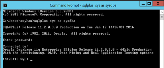 DB e login olacak kullanıcı ile DB ye login olup oracle için kullanılacak username\password ü kontrol ediyorum. Ben sysda kullanıcısı olan sys account u ile oracle a login oluyorum.