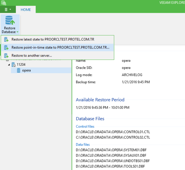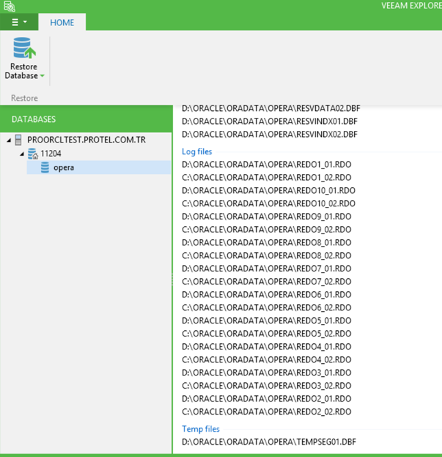 Restore app items tan oracle database seçilir ve oracle Explorer açılır.