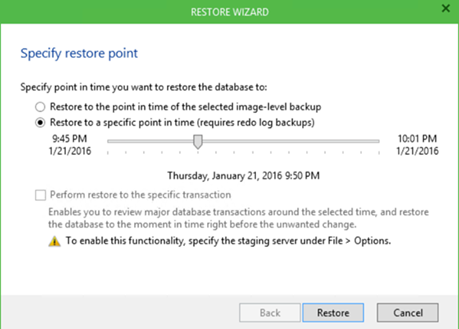 Başka bir sunucuya veya var olan sunucu istenilen zamana veya en son alınan backup a restore işlemi başlatılır.
