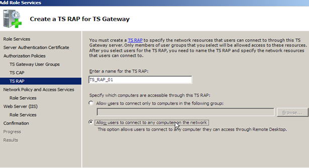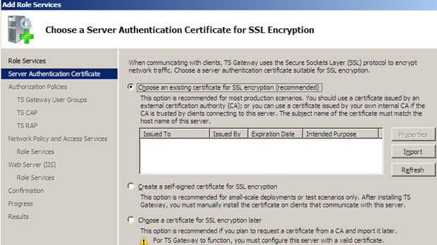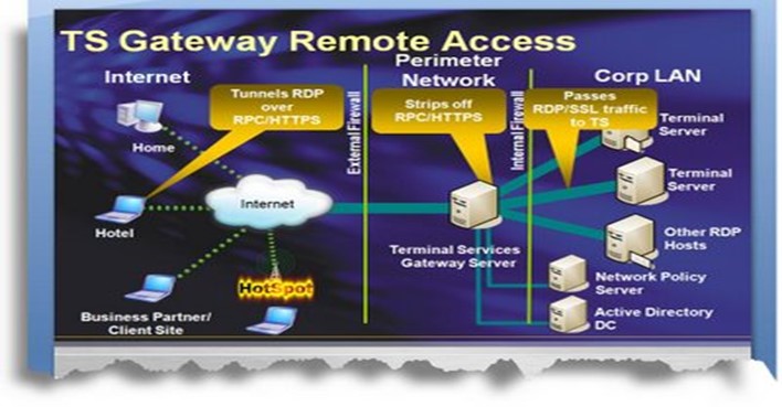 Terminal Services Gatway özelliği ile iç network ümüzü güvenli bir şekilde dış dünyaya açabiliriz. Terminal Server ımıza alacağımız bir sertifika ile güveliği sağlarken iç network ümüze erişimi de RDP ile local network ümüzde kullandığımız Local Ip ler ile erişimi sağlayabiliriz.