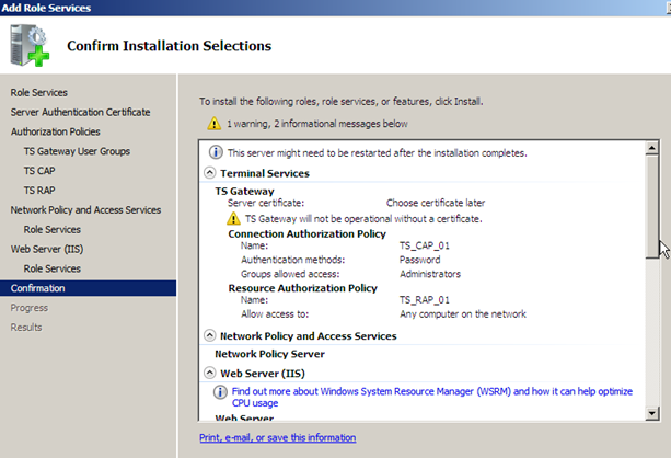 Kurulum ve diğer özellikleri ise geçtiğimizde ise önce server managerdan terminal server rolünün TS Gateway özelliğini kuruyorum.